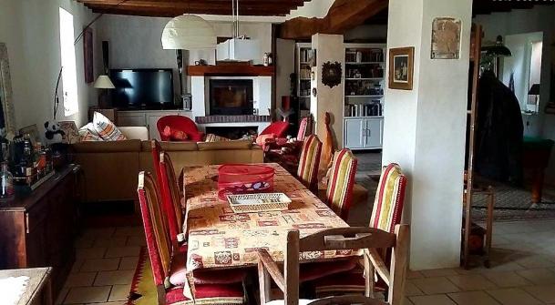 - Espace salon avec grand canapé d’angle 6 places conservé.