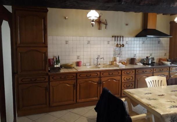- une pièce de vie avec cuisine aménagée avec cheminée.