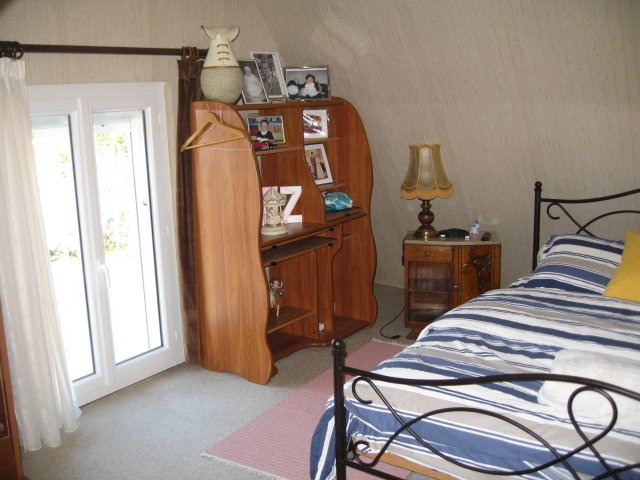A l'étage une grande chambre avec télé penderie salle d'eau WC dressing un espace aménagée d'un lit de 2 personnes avec télé.
