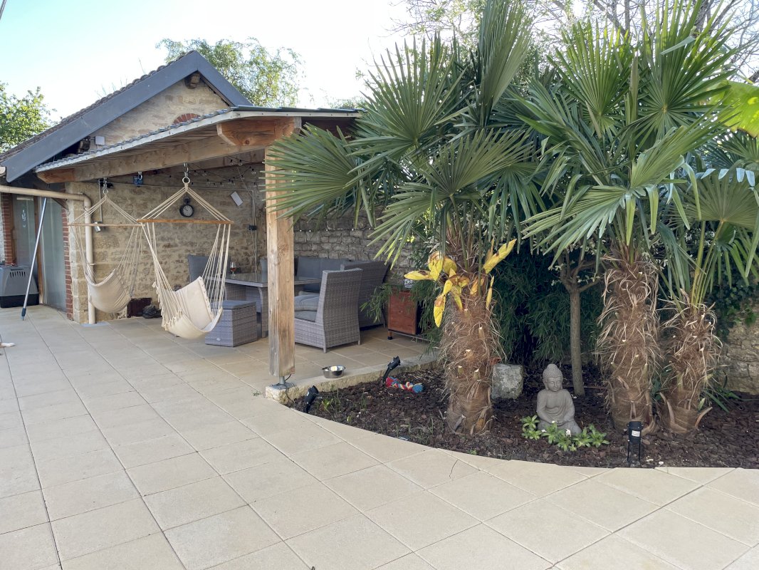 Un agréable terrain clos et arboré offre un espace détente avec piscine, terrasse couverte et une dépendance.