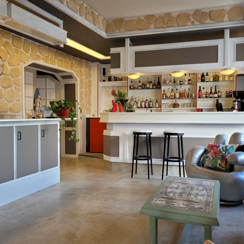 - la réception avec le SAS d'entrée principale, avec le bar. Le sol a été refait à neuf en 2024.