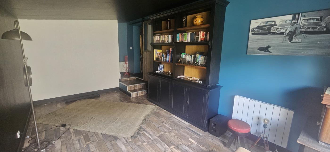 Maison totalement rénovée avec goût, comprenant au rez de chaussée un grand séjour de 36 m² avec poêle à bois et clim réversible, cuisine équipée (plaque induction, hotte aspirante, four et frigo) avec un îlot central, salle de bain (douche italienne), une grande chambre de 14 m² avec dressing, et une pièce de cinéma de 19 m² pouvant être une chambre ou pièce de détente.