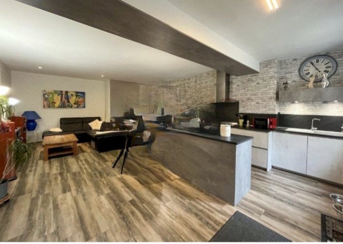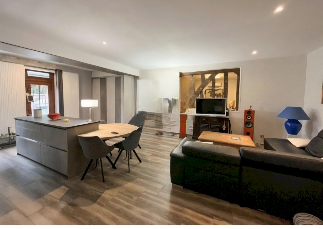 Cette maison entièrement refaite avec climatisation et PAC pour un confort maximum, cuisine ouverte et équipée Mobalpa avec piano de cuisson à induction et lave-vaisselle.