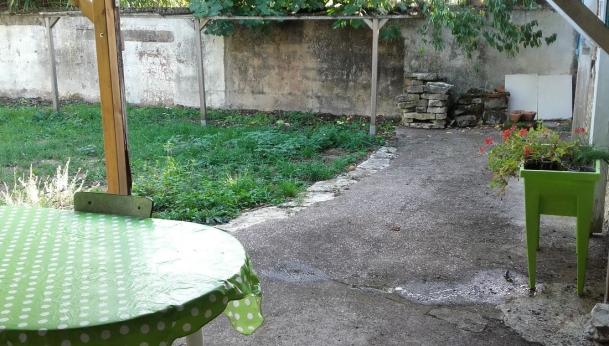 Terrasse fermée donnant accès sur le terrain, bûcher.