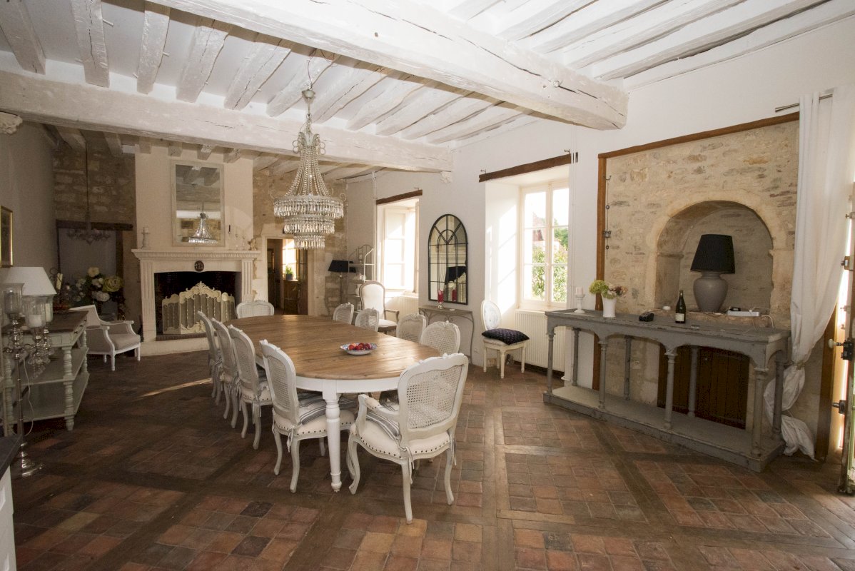 Dans un superbe ensemble immobilier ancienne maison forte du XV et XVI siècle se composant ainsi 1 maison principale sur 2 niveaux RDC belle et grande pièce à vivre déco shabby chic ouverte sur cuisine américaine agrémentée d une grande et magnifique cheminée, arrière cuisine. Spacieux salon, toilettes