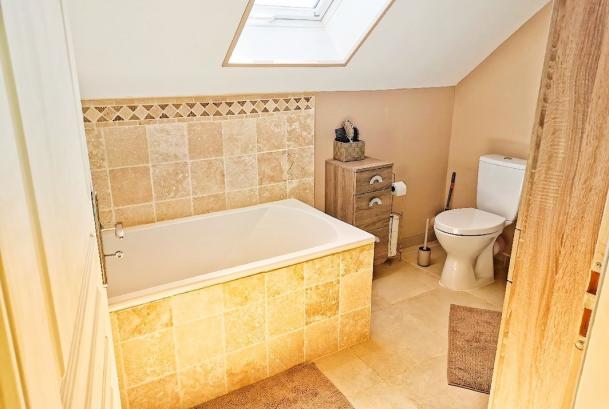 - 1 SDB (douche + baignoire) avec WC intégré.