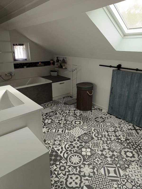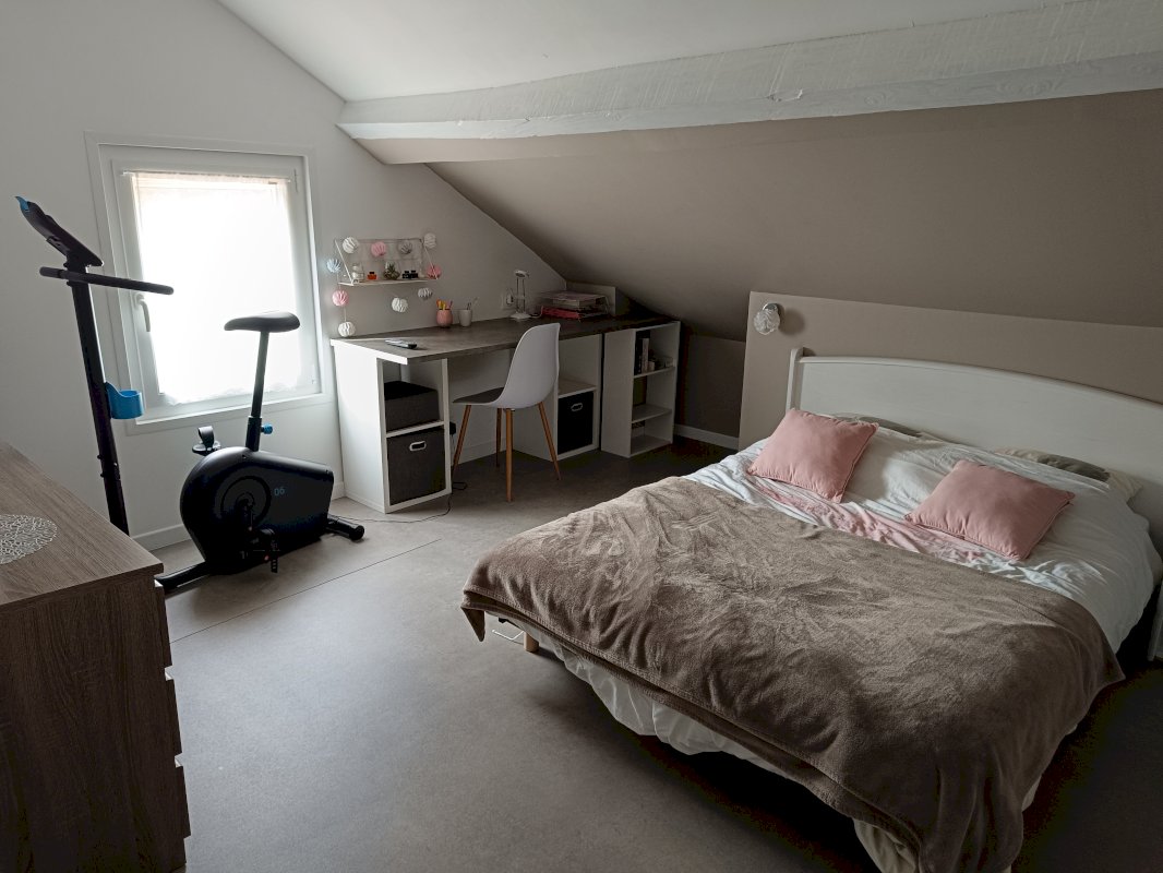 - L’etage de 60m² au sol est composé de 3 grandes chambres avec de nombreux rangements et d'une salle de bain.