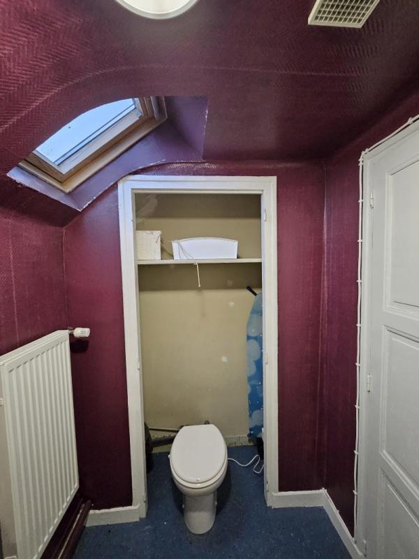 A l’étage 2 chambres, une salle de bain avec WC, petit grenier et un grand placard et un petit espace dans le couloir pour mettre un petit bureau.