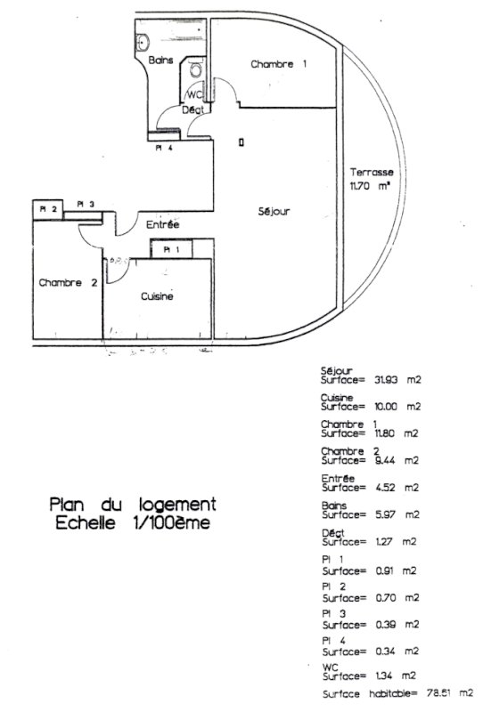 Surface confortable de 78 m².