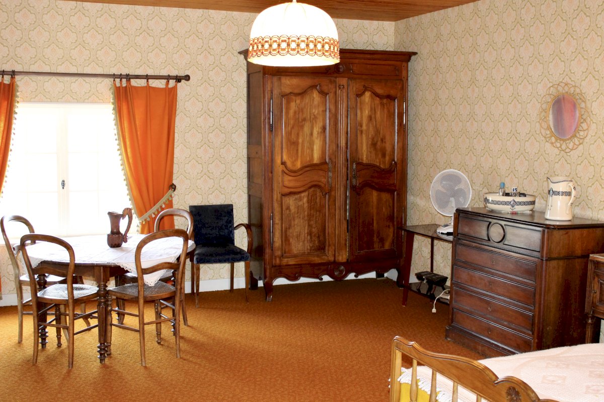 Maison composée de 2 logements pouvant être réunis, d'un garage, et d'un coin atelier/buanderie. Surface totale: 224 m² avec garage et atelier/buanderie. Surface habitable 183,27 m². Gros potentiel d'aménagement complémentaire avec de vastes greniers aménageables d'environ 110 m². 4 chambres. dont 2 très grandes ( plus de 24 et 29 m² chacune) pouvant être divisées en 2. Deux salles à manger dont une avec de belles voûtes en pierres de tailles. 1 salon . Belles poutres avec plafond à la française en chêne . 2 grandes cheminées en pierres de taille. 2 cuisines dont une très grande ; 1 salle d'eau; 1 cave.