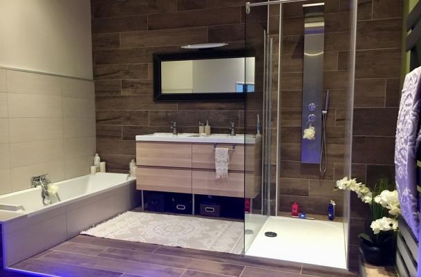 - salle de bain avec tout le mobilier restant (baignoire, douche italienne, meubles double vasques miroir etc...) et WC.