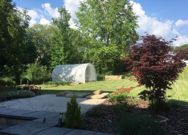 Jardin aménagé avec potager desservi par une grande terrasse de 90 m².