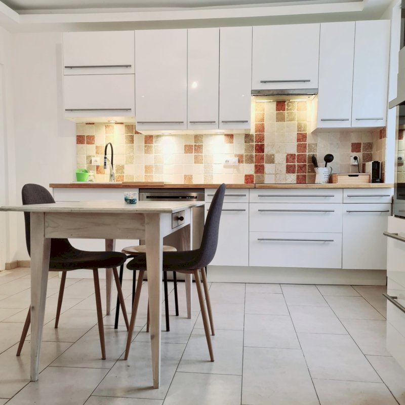La cuisine, de par sa taille et ses équipements modernes accueille aisément famille et amis.