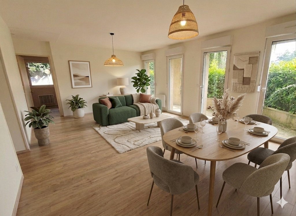 Situé en rez-de-chaussée d’une résidence avec espaces verts, cet appartement offre un cadre de vie pratique et agréable.