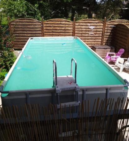 Entiérement cloturée et entourée de haie et de sapin, elle dispose d'une grande cour a l 'avant pouvant acceuillir jusqu'à 3 voitures (dont 1 pouvant etre a l'abri sous une pergola) et d' un grand jardin arboré de 12 Are avec piscine hors sol, cabane en bois pour rangement des outils, cabane et bac a sable pour les enfants ainsi qu une balançoire.