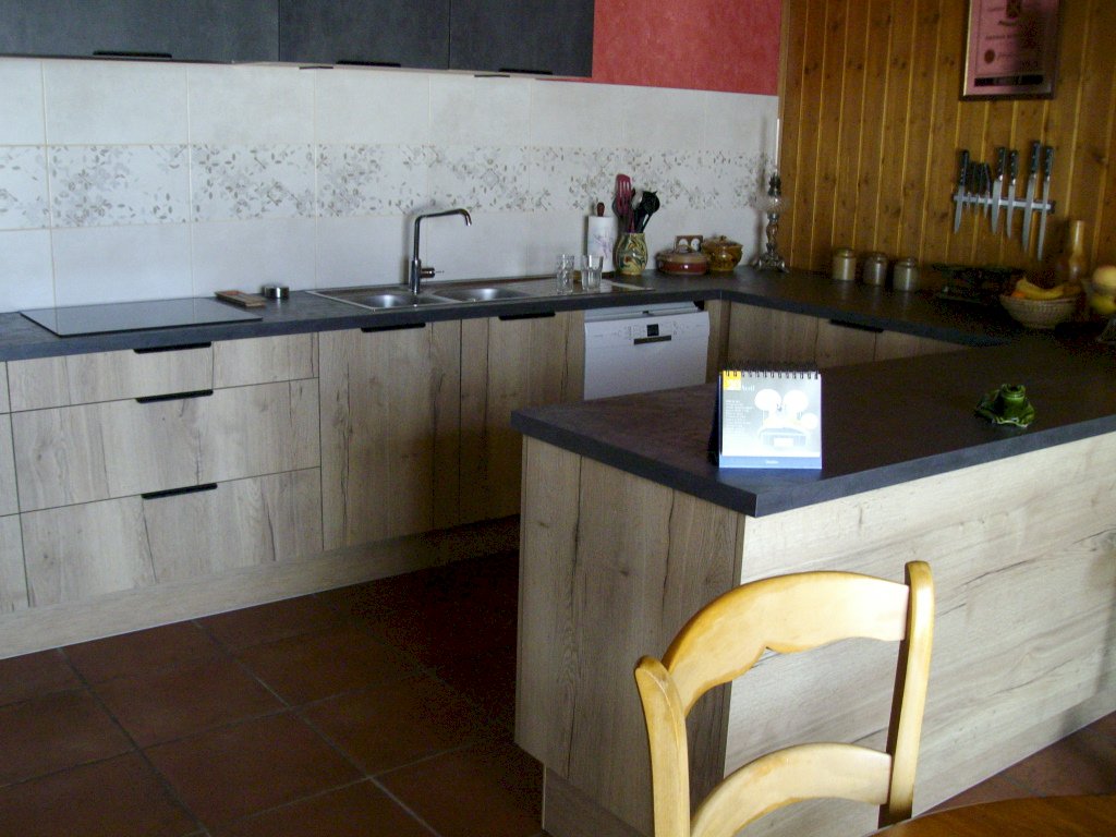 Au rez-de-chaussée : entrée, salon avec cheminée insert Focus, salle à manger, cuisine équipée et aménagée (refaite à neuf en novembre 2023), chaufferie/buanderie, cave.
