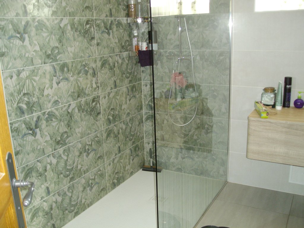 A l'étage : 1er palier avec bureau, 2 salles d'eau, dont une douche à l'italienne, refaite à neuf il y a 3 ans). 2ème palier avec 3 chambres. Possibilité d'agrandissement.