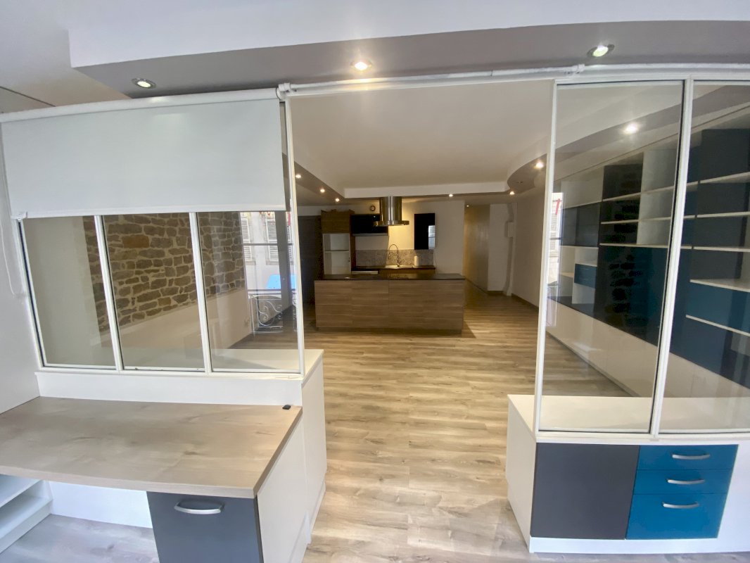 - D’une grande pièce de vie de plus de 40 m² incluant une cuisine meublée et équipée (plaque à induction, hotte, lave-vaisselle), un espace salle à manger ou salon/salle à manger, une bibliothèque spacieuse avec de très nombreux rangements, un espace salon et bureau avec rangements également, pouvant être isolé du la pièce de vie pour créer une 3ème chambre d’appoint ;