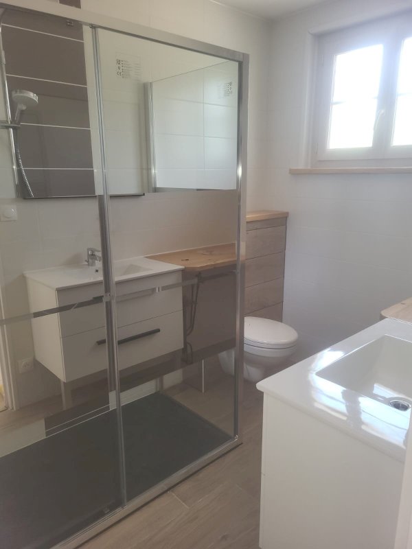 1 salle de bain entièrement refaite avec une belle douche à l'italienne