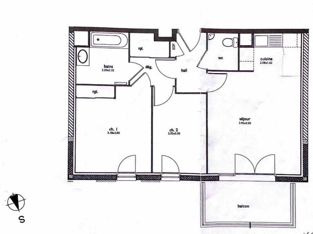 Appartement T3 de 56 m², avec un balcon de 6,5 m², exposé plein sud, situé au 1er étage d’une résidence sécurisée construite en 2012.