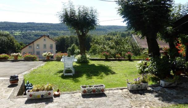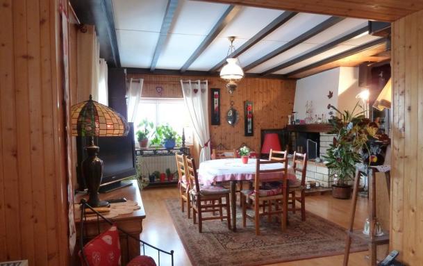 Sur terrain arboré de 3169 m² avec 2 chalets de jardin pour matériel, grand potager, portail et porte garage électrique, vue imprenable et ensoleillée, proximité suisse, maison mitoyenne en pierre d'avant 1900 rénovée, constituée de :