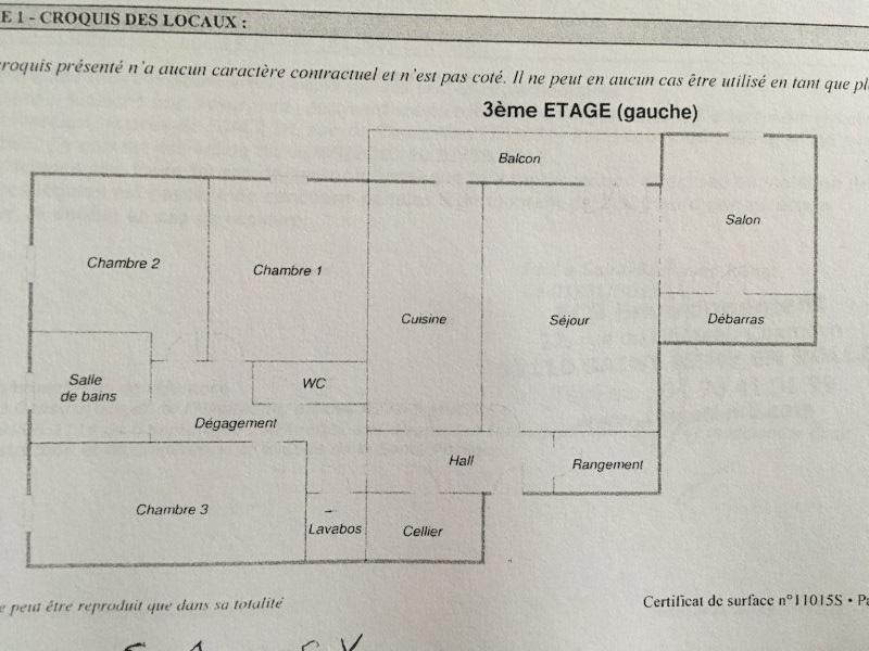 Appartement de 94 m², 3 chambres, une salle a manger et un salon, une cuisine, une salle d'eau, un coin lavabo, 3 placards de rangement,
