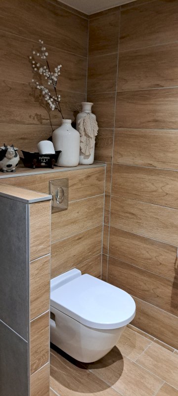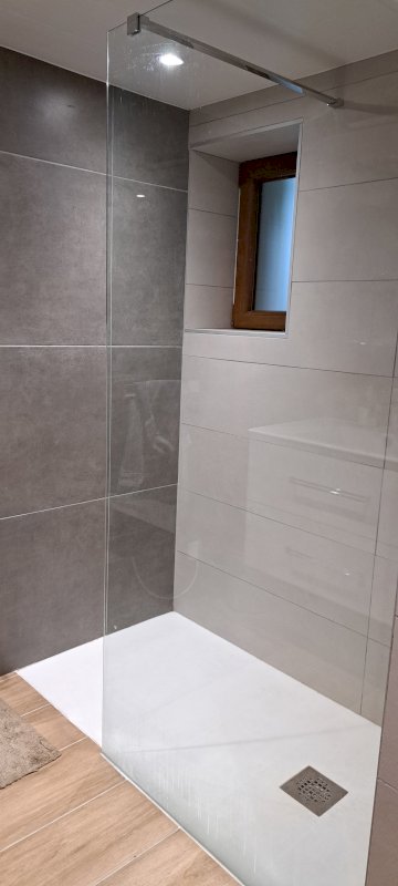 La ferme se compose au rez-de-chaussée d'une cuisine (15m²), d'un séjour (17.5m²), d'un salon (25.8m²) chaque pièce avec poêle à bois, d'une chambre double (24m²) avec radiateurs électriques neufs de qualité, d'une salle d'eau + WC + douche à l'Italienne + radiateur sèche-serviettes (rénové en 2018).