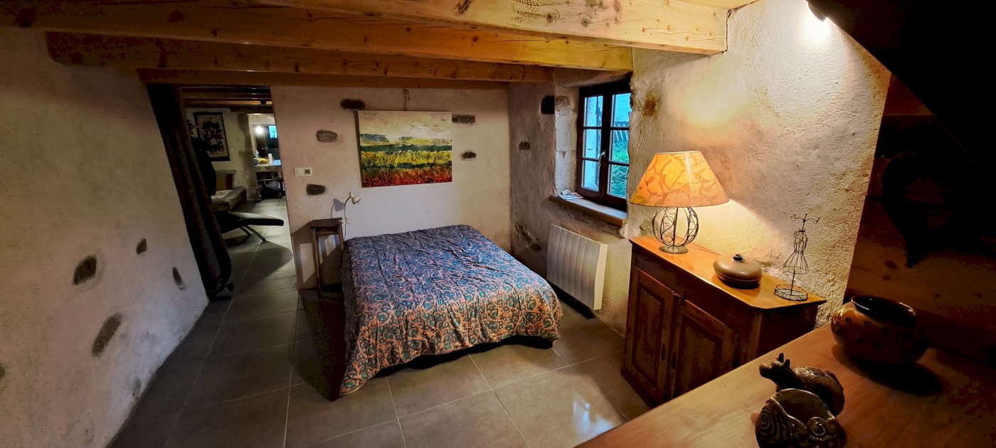 A l'étage, grande chambre (23m²) avec radiateur électrique neuf de qualité.