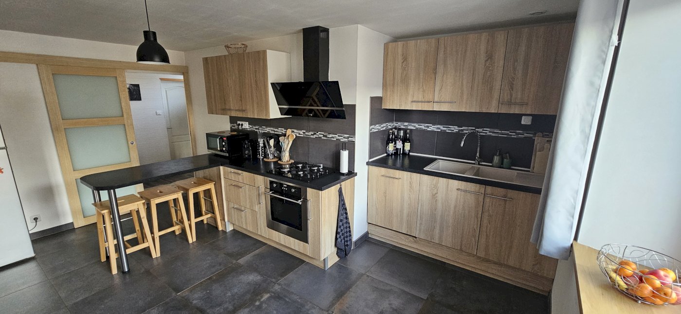 - Cuisine équipée : Hotte, four, plaque de cuisson.