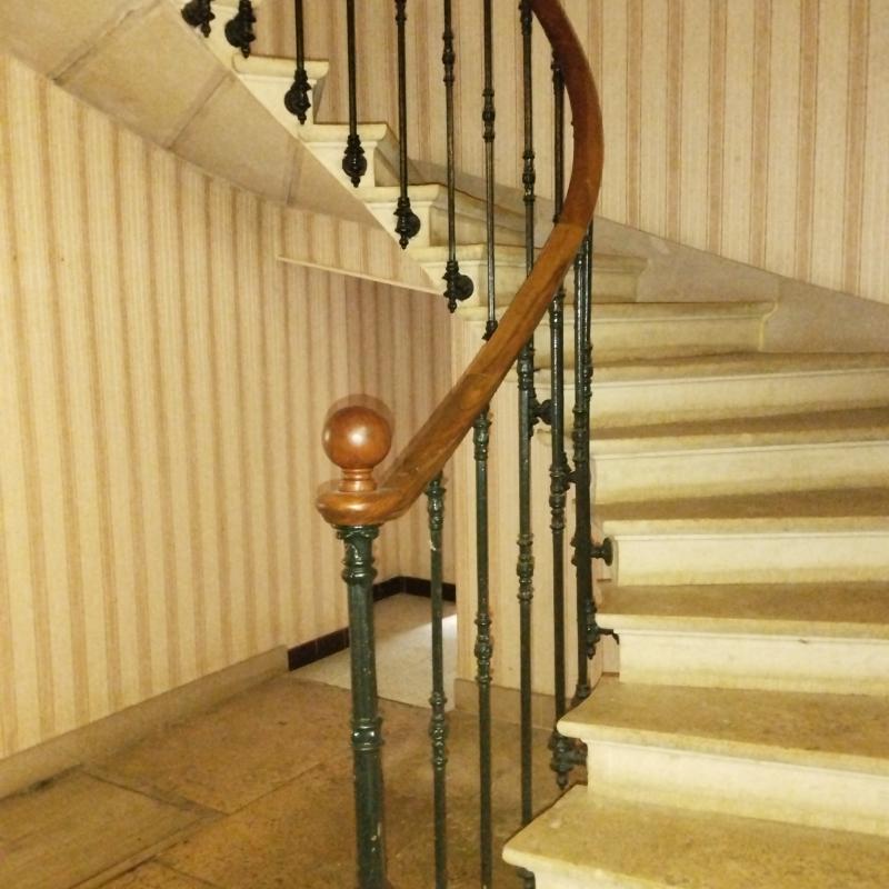 Escalier pierre et fer forgé. chauffage bois et chaudière gaz.