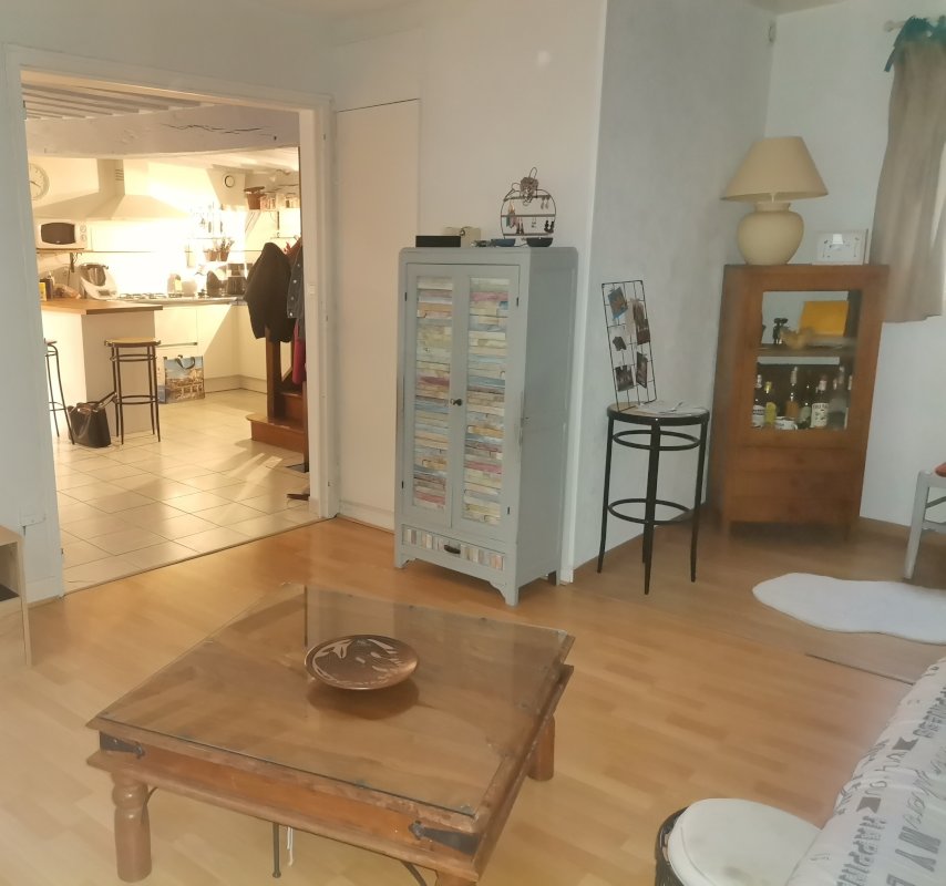 - 1er étage : cuisine équipée ouverte sur salle à manger, salon lumineux, wc.