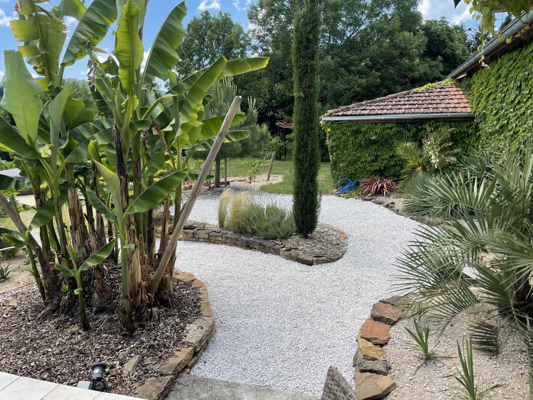 Proche de l’habitation les plantes exotiques autour des 4 terrasses créent une belle ambiance provençale avec ses murets en pierre sèches, son coin SPA, avec la possibilité d’y intégrer une piscine ou bassin de baignade.