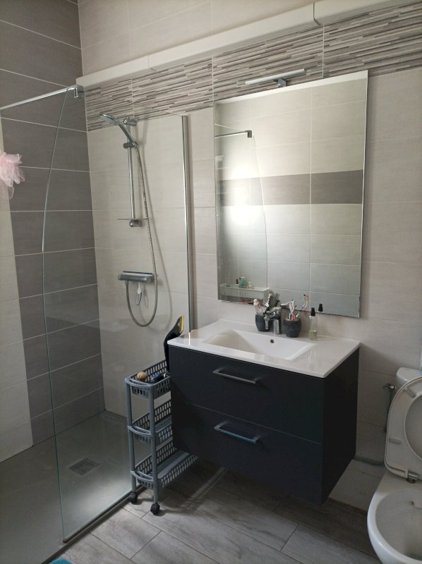 Une première extension comporte une Salle de bain avec douche à l'italienne, un WC et une buanderie.