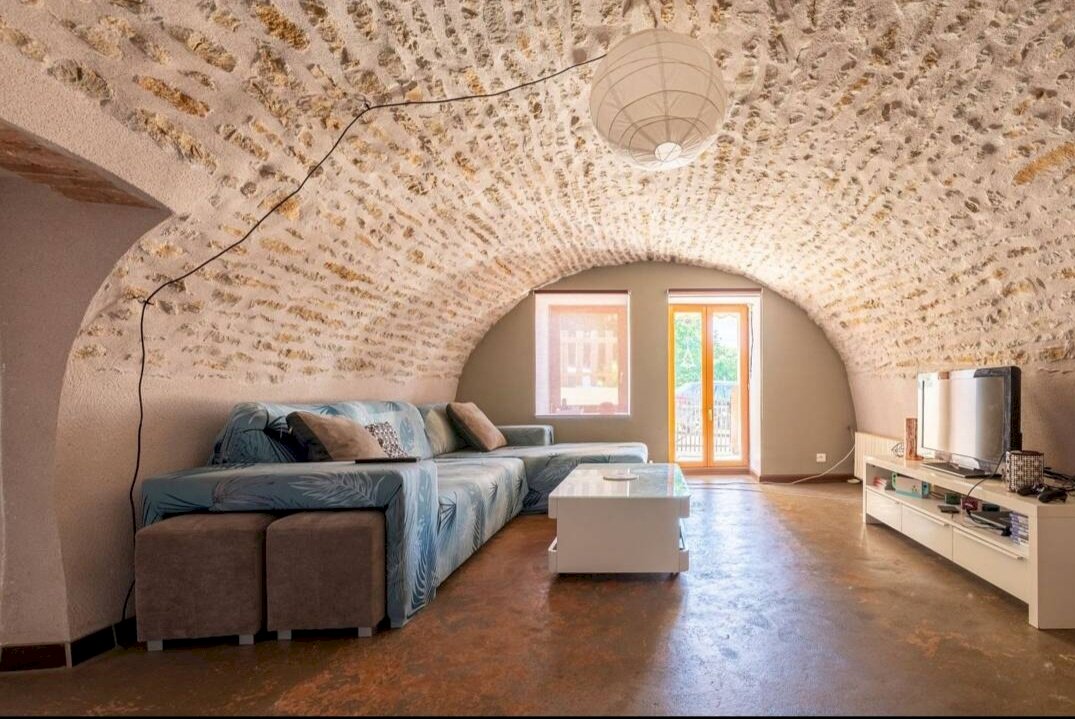 Un salon voûté avec pierres apparentes, plein de charme