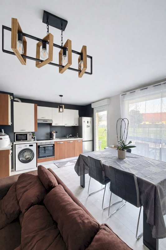 Quartier des mélodies - Appartement de type 3 pièces d'une surface de 57m² situé au rez de chaussée, comprenant : une entrée avec placard, une cuisine ouverte et équipée, 2 chambres avec placards aménagés, un dégagement avec placard, une salle de bain, un WC séparé, une terrasse sur terrain privatif de 120m² et une place de parking privative.