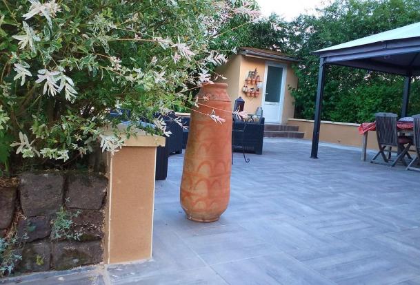 - Terrasse pavée de 85 m² donnant sur l’entrée et la cuisine, toilettes extérieurs.