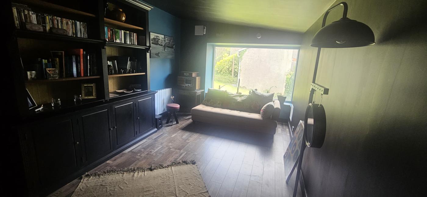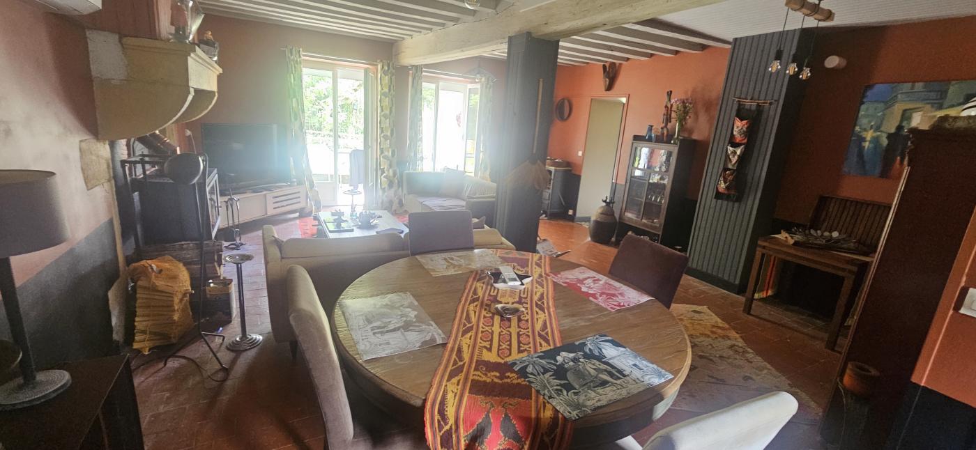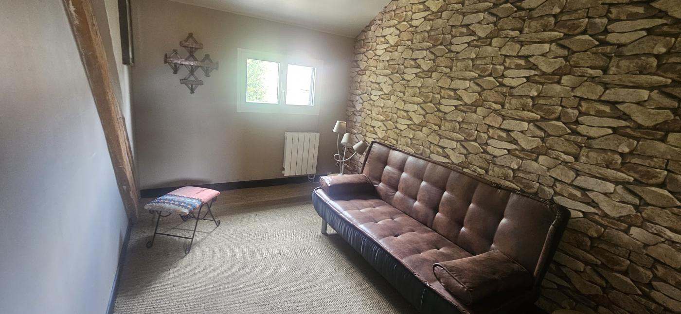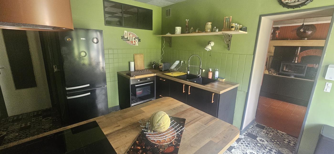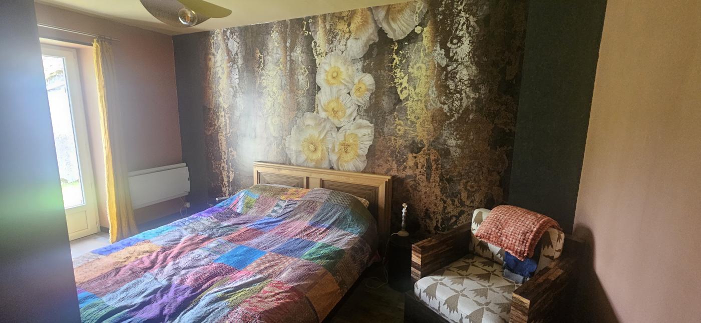 Maison totalement rénovée avec goût, comprenant au rez de chaussée un grand séjour de 36 m² avec poêle à bois et clim réversible, cuisine équipée (plaque induction, hotte aspirante, four et frigo) avec un îlot central, salle de bain (douche italienne), une grande chambre de 14 m² avec dressing, et une pièce de cinéma de 19 m² pouvant être une chambre ou pièce de détente.