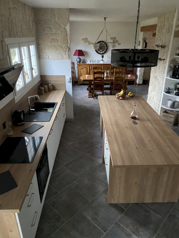 Vous apprécierez ses deux salles de bains et deux WC, ainsi qu’une cuisine récente, aménagée et ouverte sur un salon lumineux de 44 m², parfait pour vos moments de convivialité.
