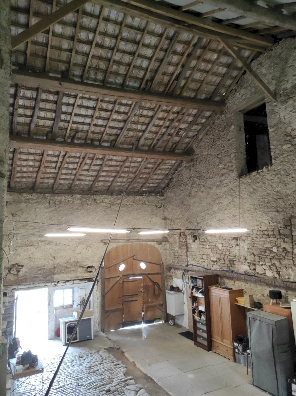 La partie grange d’une surface au sol d’environ 125 m² permet d’envisager divers projets d’aménagement.