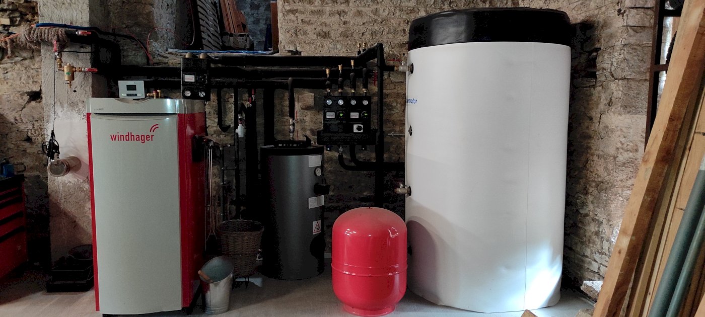 Le système de chauffage est une chaudière biomasse bois installé en janvier 2024. Les fenêtres sont en PVC double vitrage.