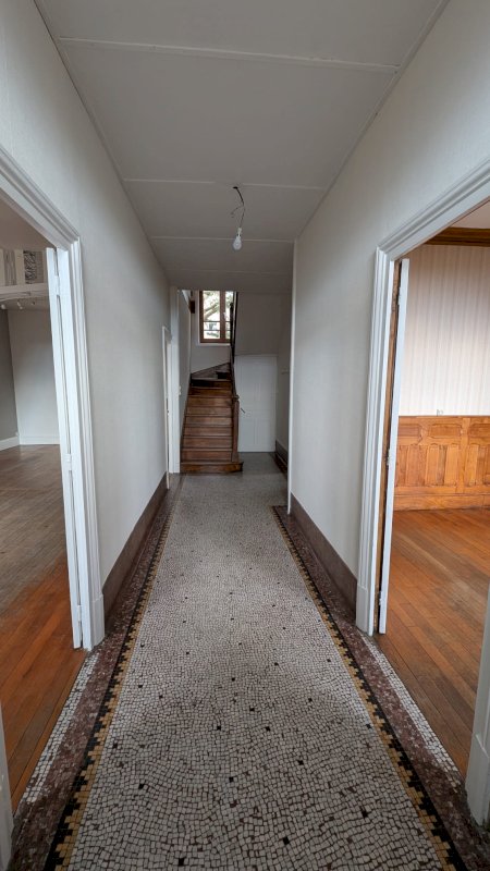 - Escalier de liaison avec l’Etage : Bel escalier en bois massif (environ 4,5 m²)