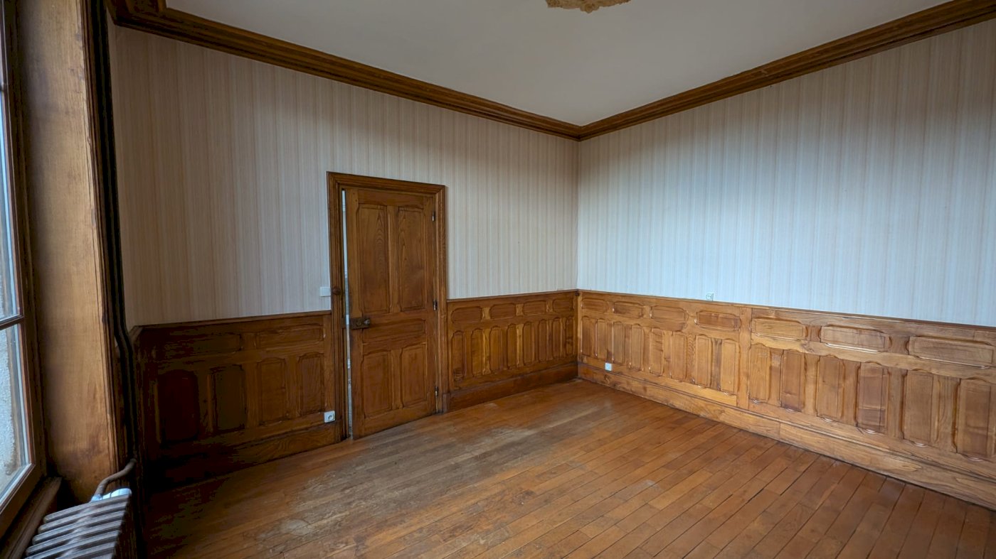 - Bureau : 14 m² ; Cheminée en marbre, Boiseries en Chêne Massif (superbe tour et portes placards) + moulures en plafond et Parquet en chêne massif ;
