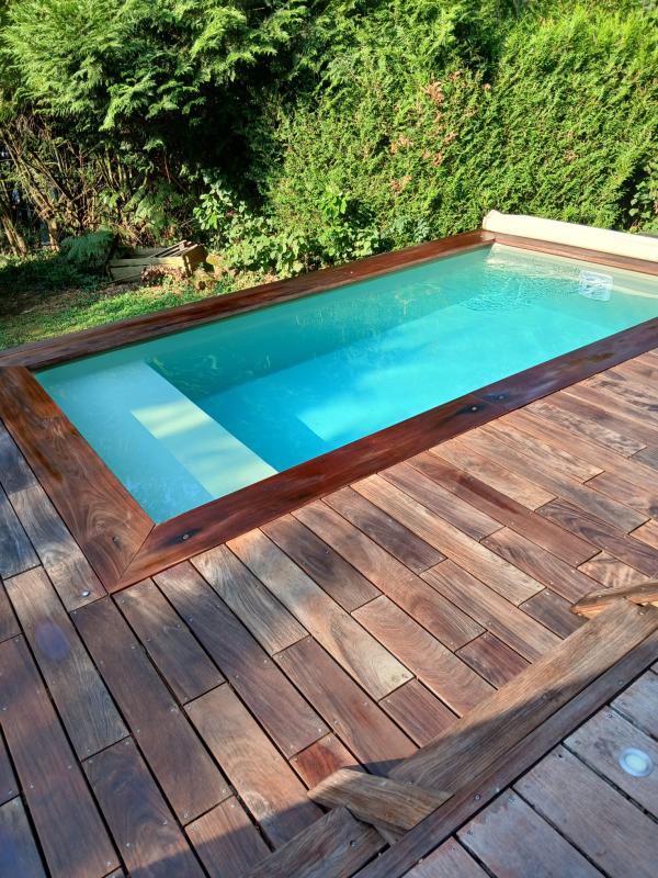 La terrasse arrière accueille une piscine chauffée avec système de nage à contre-courant, installée il y a seulement 2 ans (encore sous garantie décennale). Un véritable atout pour vos moments de relaxation ou vos séances de sport à domicile.