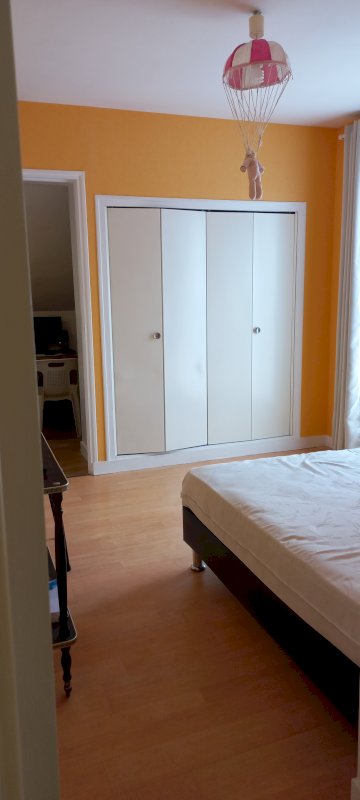 A l’étage 3 chambres : la première (15,2 m²) ouverte sur une terrasse, la deuxième (10,5 m²) possède 2 placards et un espace dressing, et la troisième (11,8 m²) avec 2 placards. Et à proximité des chambres une salle d’eau (2,8 m²), une salle de bain (6 m²), et un WC.