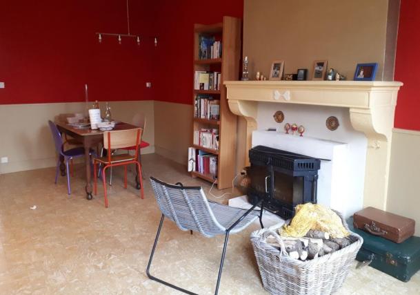 - entrée sur salon-salle à manger de 19 m² avec un poêle à bois,