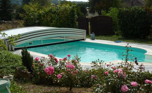 Terrain de 1668 m² entièrement clos et arboré, avec piscine couverte de 8 x 4m avec escalier et plage en dalle. Dépendance fermée de 17 m², abri bois de 10 m², et cabanon bois de 5,5 m². Cour en enrobé et motifs pavés.