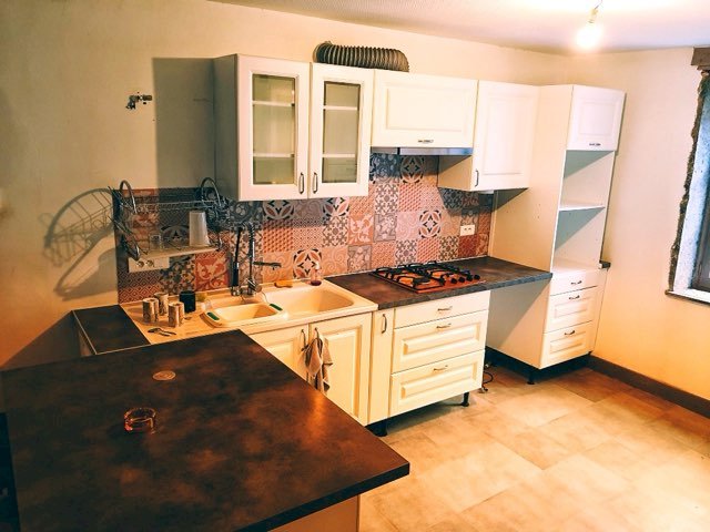 - Au 1er étage ou rez-de-jardin (accès jardin 200 m²), salle principale avec placards et évacuation prête pour poêle à bois, à peulets ou autres, cuisine ouverte aménagée, chambre (ou bureau), salle d'eau avec douche et WC.