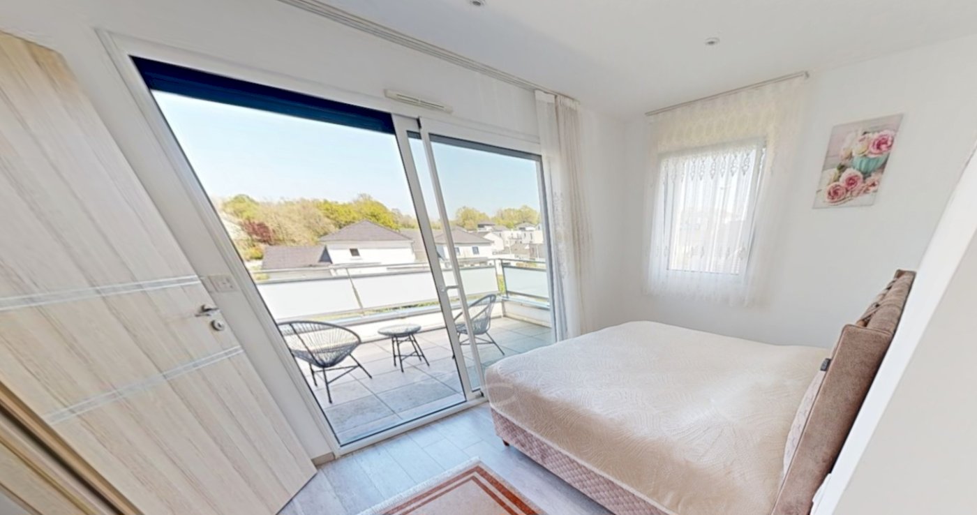 L'étage offre 3 chambres dont une suite parentale avec grand dressing et salle d'eau privative, ouvrant sur le toit terrasse, 2 autres chambres l'une de 12 m² avec placard et l'autre de 15m² avec dressing, une salle de bains (baignoire + douche italienne) et wc séparés avec lave mains.