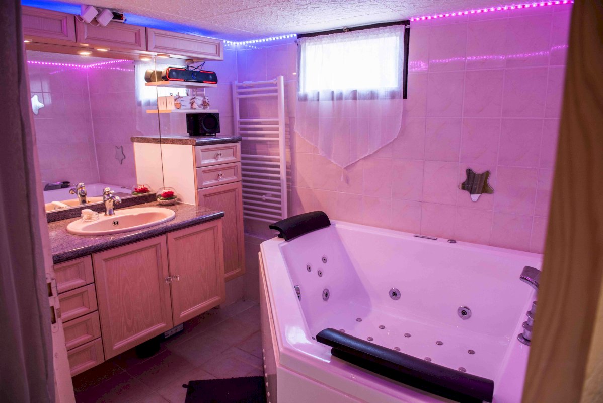 Sous sol : salle de cinéma, buanderie de 16 m² équipée, salle de bain avec jaccuzi, sauna, wc, une chambre, garage.
