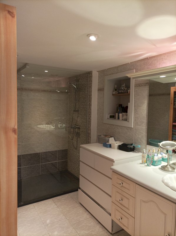 Une première extension comporte une Salle de bain avec douche à l'italienne, un WC et une buanderie.